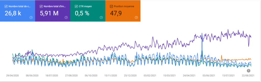 Il est très important de suivre l’évolution de son CTR et de ses impressions dans les résultats de recherche. Vous pouvez le faire facilement avec l’outil Google Search Console. Cet outil gratuit développé par Google permet de suivre facilement les performances de votre site web :